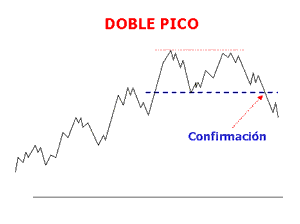 Doble pico: se produce cuando hay una tendencia alcista. En este caso los máximos son cada vez más altos, pero si en un momento dado un máximo no supera el máximo anterior, esto es señal de que se puede producir un cambio de tendencia.