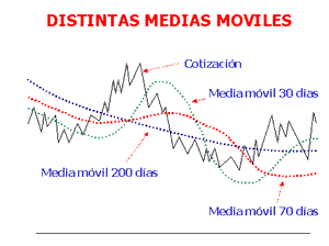 Las medias móviles son gráficas formadas por los valores medios de una cotización durante un periodo determinado.